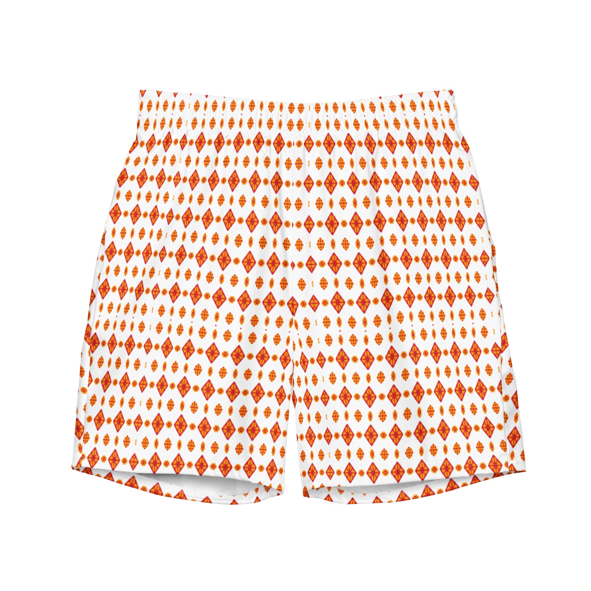 Crafted sustainably, the Orange Batik Swim Shorts feature: