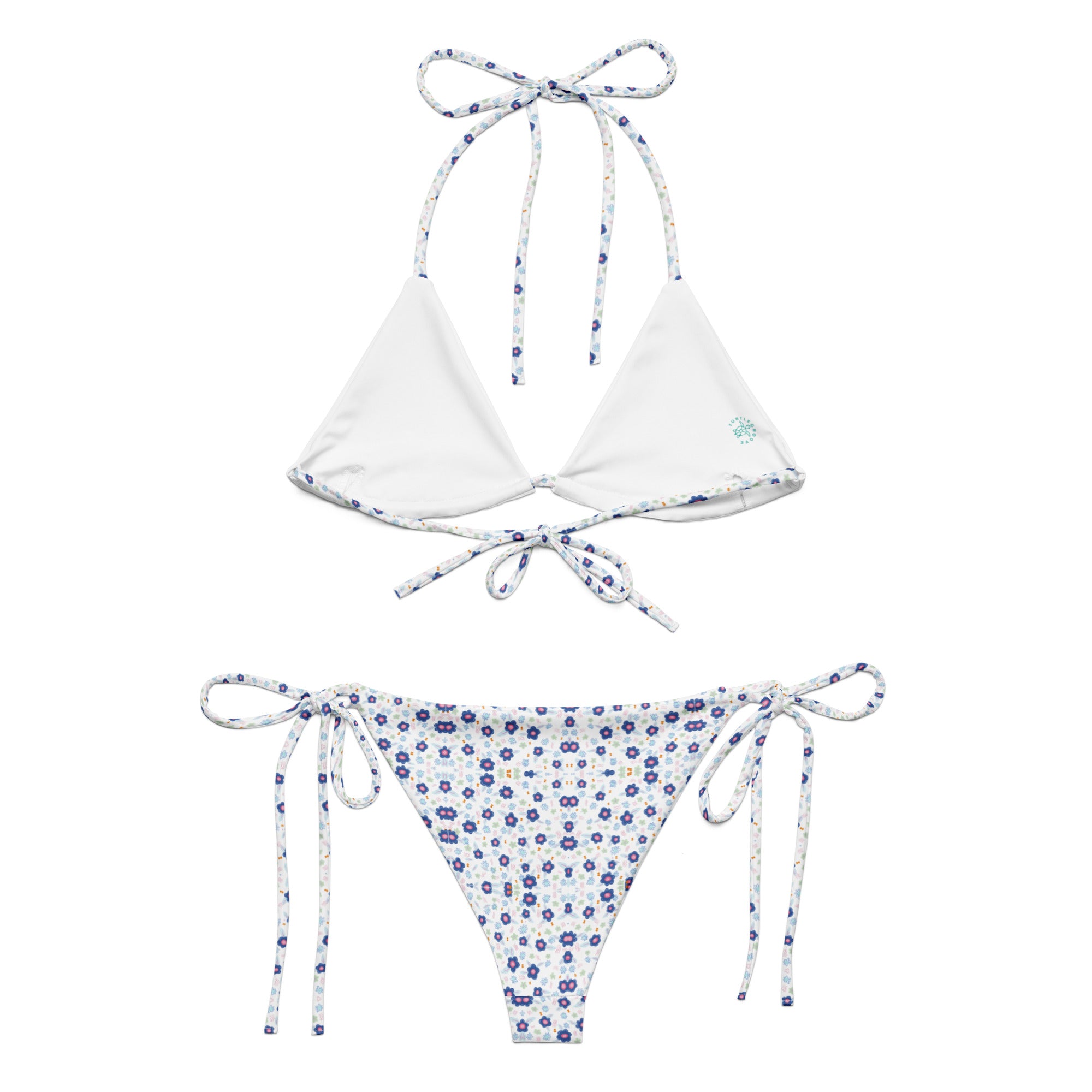 Our Blue Drops eco-friendly string bikini represents a commitment to sustainable fashion that doesn’t compromise on style or comfort. Designed to reduce the impact of textile waste, this swimwear helps combat the growing problem of plastic pollution in our oceans and landfills. By choosing swimwear made from recycled materials, you contribute to preserving marine life and reducing environmental harm caused by synthetic fabrics.