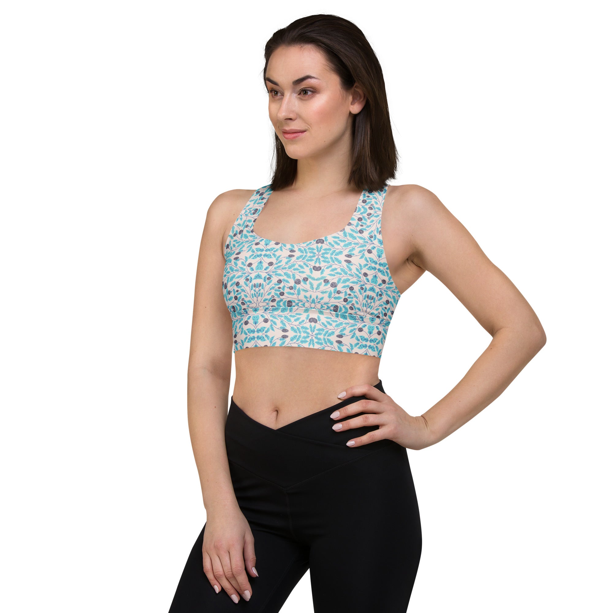 • Longline silhouette adds coverage and style, enabling the sports bra to double as a trendy streetwear piece on sunny days